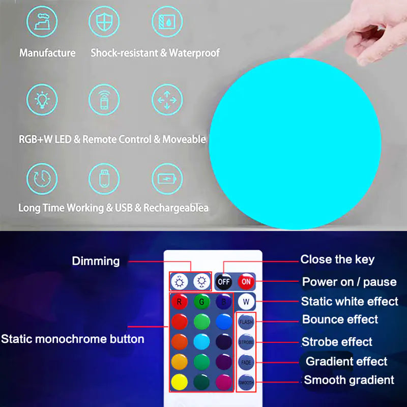Featuring a remote control for effortless operation, these lamps come with a rechargeable battery that lasts 10-12 hours on a full charge. With an impressive IP68 waterproof rating, they are built to withstand the elements, making them ideal for outdoor use.